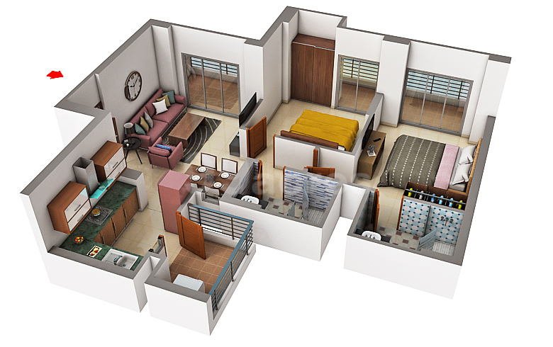 Size: Starts from (1053 Sq-ft - 1225 Sq-ft - 2BHK)