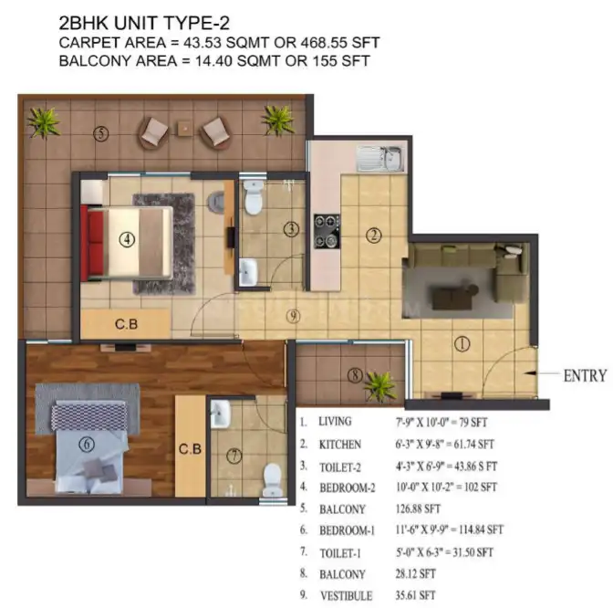 Size: Starts from (468.55 - 641.42 sq.ft.)